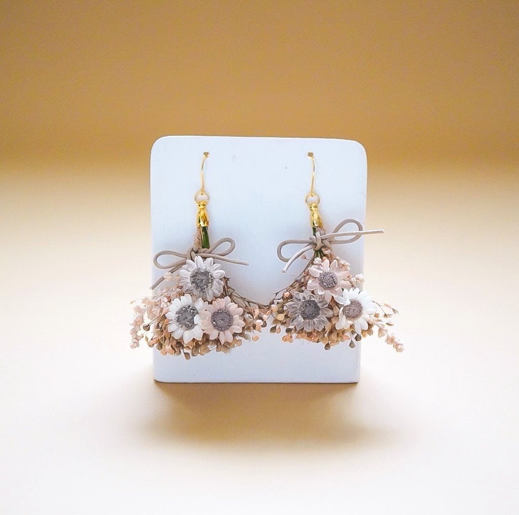 ミルクティーの花束の耳飾り